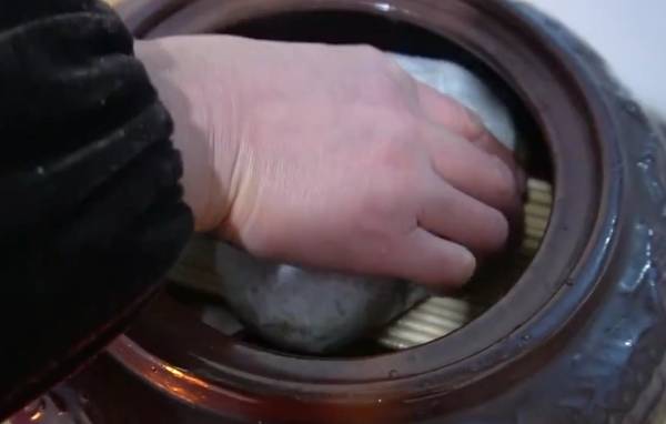 為瞭不讓雞蛋飄起來,放入一個小簾子,拿塊石頭壓一下雞蛋。不然雞蛋飄起來是會壞的。