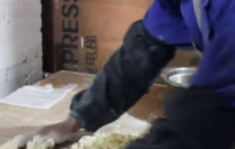 揉好的面放到機器裡面壓成薄片!