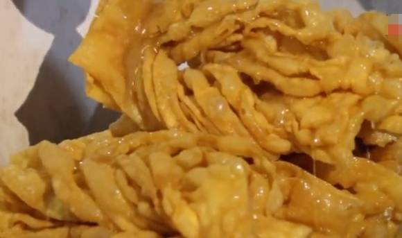 這種外表看起來低調的傳統特色小食如今已經有百年的歷史,但現在會做這種傳統小吃的都是老一輩的人,今天有幸吃到一傢正宗生意火爆的散,更幸運的是這傢店的店主60歲的農村大爺讓我去看看他制作蛋散的過程,今天就跟小編去看看這種傳統美味是怎樣制作完成的吧!