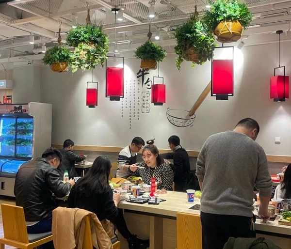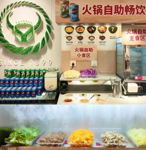 店裡增設瞭冷餐櫃,從剛開始的40種食材,目前運營一個月後增加到50種,其中谷飼肥牛是主打招牌。