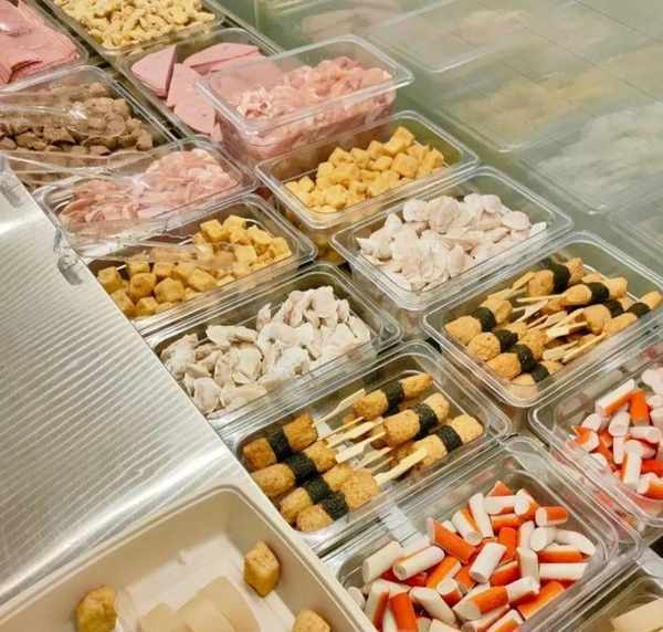 還有各種肉類、魚丸肉串、蔬菜、菌類等菜品及主食,候餐時可以挑選幾樣免費的小零食,店內7款自制飲料,3款其他飲料也是不限量的,餐後甜點任意吃。