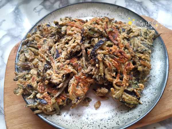 2,這樣烙制蔬菜餅,不止是茄子可以這樣做,其他的蔬菜都可以這樣做,可菜可飯很好吃。