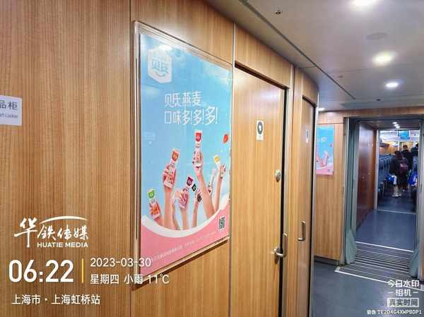 從外車身品牌logo和“貝氏燕麥,口味多多多”品牌slogan的高調露出,到車外門貼、靜態海報、枕巾桌貼、行李箱彩貼等一體化的品牌視覺展示再到專屬LED屏+語音播報,整車沉浸式體驗,有效刺激目標受眾的感官接納,強制性植入人群印象中,有效提高廣告觸達率。