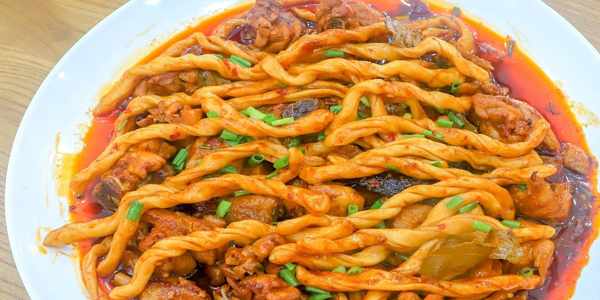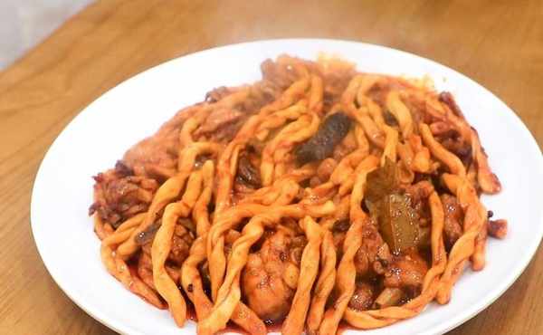好瞭,一道嚼勁十足的雞腿燜面就做好瞭。