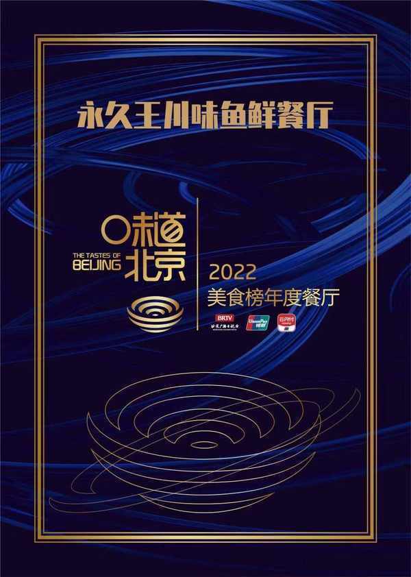 2023年4月,在“2022味道北京美食榜年度餐廳”盛典中,北京萬達文華酒店的“永久王魚鮮餐廳”榮獲瞭“美食榜年度餐廳”的榮譽.