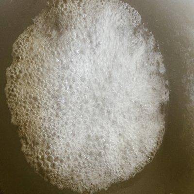 2.用大火將水燒開,加入兩勺鹽,使面條味道更好,煮熟後不會特別粘。水開後,讓堿水浮出水面。