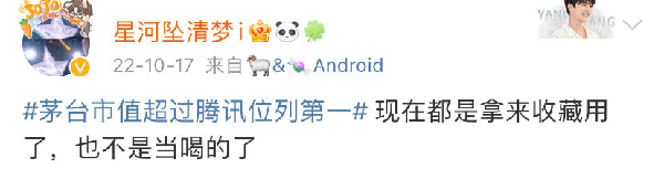 微博網友“星河墜清夢”說:“茅臺現在都是拿來收藏用,也不是當喝的瞭“