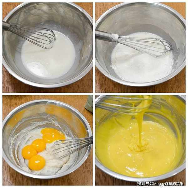 7. 制作蛋糕面糊:牛奶和色拉油混合至無油花狀;