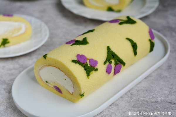 春天就是要多姿多彩,所以我這次搞瞭個鬱金香圖案的蛋糕卷。