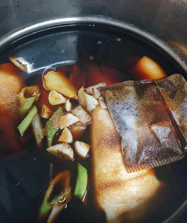 最後就是加夠水瞭,要一次加到位,一般來說是食材2倍就可以瞭,但是這次我們燉豬蹄,是越久越爛,所以加上3倍的水也沒問題。