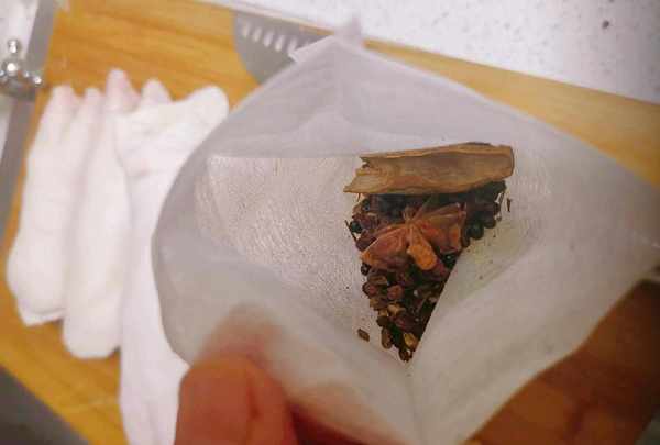 拿一個佈料湯包,裡面裝上八角桂皮香葉花椒,基本就是這些燉肉的大料。