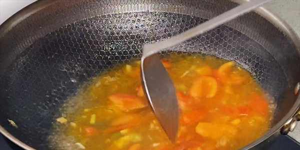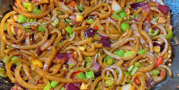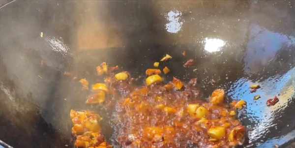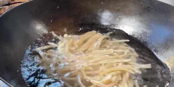 8:加入食鹽、白糖、胡椒粉,翻炒幾下,再加入陳醋,炒至汁幹亮油。