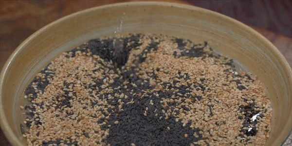 1:準備100克白芝麻,20克白芝麻,加入清水,淘洗幹凈,再控幹水分。