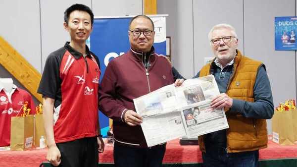 圖 諾曼底乒協主席Patrick向酣客老王贈予諾曼底乒協專屬戰袍