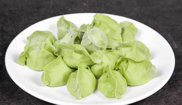 這一盤綠油油的餃子又是什麼做的皮,它的皮是用菠菜汁做的,綠油油的小餃子特別好看,關鍵是很有營養看著就特別好吃
