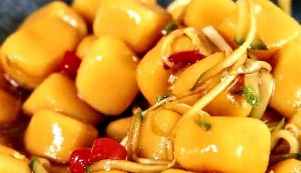 【食材】:300克玉米面,100克面粉,適量的生抽,一勺陳醋,一勺白糖等