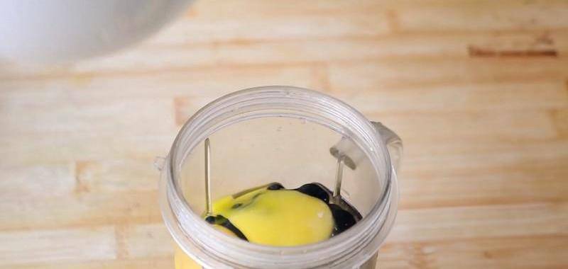 泡好的黑豆,清洗幹凈,放入料理杯裡面,往裡面打入兩個雞蛋,加入適量清水,打成黑豆糊。