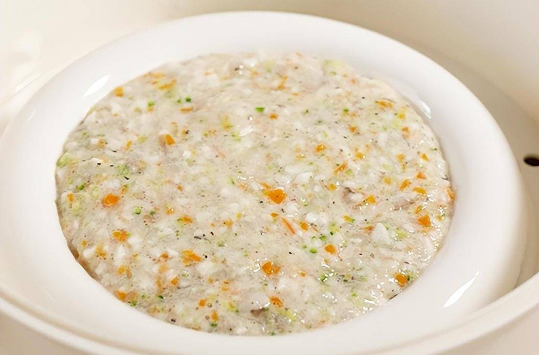 2、也可以加點荸薺、玉米等等,口感豐富有顆粒感,小月齡寶寶可以剁碎一點。寶寶吃起來嘎嘎香!