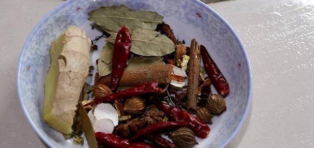 鍋內燒幹,加一點油,倒入白糖焯糖色,加適量的清水,把香料倒進去,加一勺紅曲米粉和適量的生抽調色,加一點白酒去腥。(白酒的去腥效果會比料酒或者黃酒的好。)