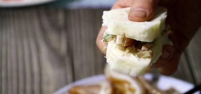 豬頭軟爛後就可以出鍋瞭,切小片,加香菜一起剁,夾饅頭片一起吃特別香。