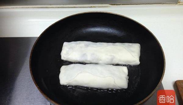 9.平底鍋內抹一層油,油熱後,將餅子放進去小火煎
