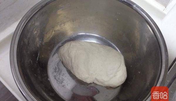 4.將面粉用40度左右的溫水和成面團