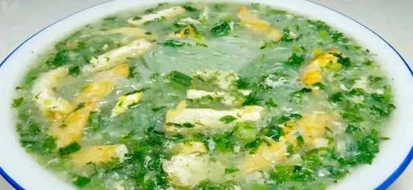 4、起鍋燒油,放點薑末炒香,把薺菜倒入到鍋炒出香味。倒入冷水,水要多一點,再倒入油豆腐,開大火煮開,放一點鹽來調一下底味,然後下入粉絲,把粉絲煮軟之後,倒入紅薯淀粉攪勻,然後下入蛋液,用筷子轉圈,把蛋液給它劃散,就做好瞭。
