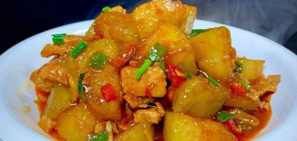 準備食材:冬瓜、豬肉、大蒜、生薑、青紅菜椒、小蔥
