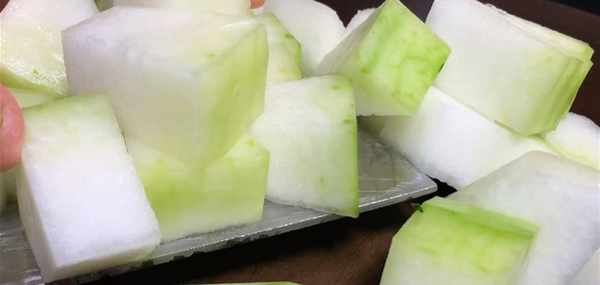 1:準備2塊錢冬瓜,削去外皮,去掉瓜囊,清洗幹凈,用刀切成小塊。