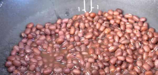2:紅豆泡開後,倒入電飯鍋中,按下開關,煮40-50分鐘,把紅豆煮熟。