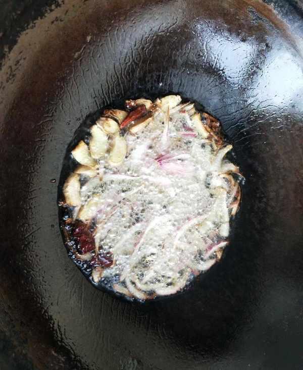 註意用的西瓜越甜,做的西瓜醬越好吃。起鍋燒油,把切好的蔥花,薑末,花椒,八角,桂皮,香葉,辣椒爆鍋,炒出香味,