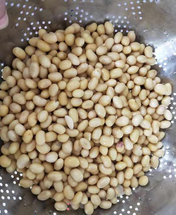 首先,先把黃豆淘洗幹凈,提前浸泡一晚上,使黃豆充分的吸足水分,在煮的時候,更容易煮熟,煮爛,這樣做出來的西瓜醬口感會更好。然後把泡好的黃豆倒入鍋中,加入適量的清水,水的量要沒過黃豆,開大火煮開,轉小火慢煮,等黃豆煮到用手一捻就碎就可以瞭,把黃豆撈出控幹水分。