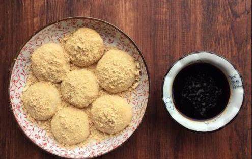 熟黃豆粉裡放一點白糖,搗好的糯米團扔進熟黃豆粉裡,摘成小一點的劑子,均勻的滾上黃豆粉。