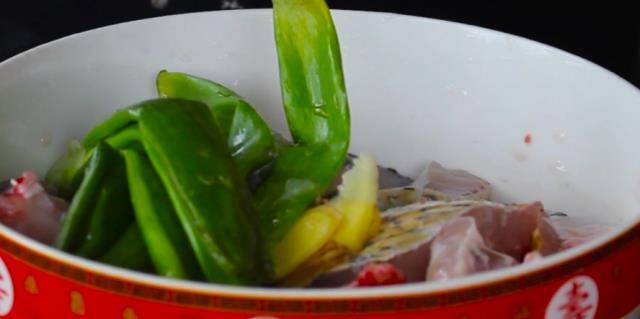 2、切好的魚肉加入薑片,蔥葉擠出水放在裡面,再加入適量料酒、鹽、少許胡椒粉,抓勻醃制一下。