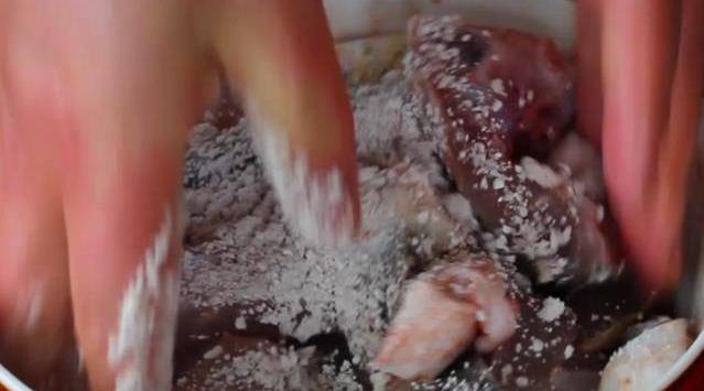 4、魚醃制好後把蔥薑挑出來,加適量紅薯淀粉,然後拌勻。