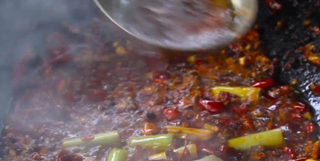 5、鍋裡加一點豬油炒化,再加適量植物油,下入紅花椒、泡椒,來兩三勺豆瓣醬,然後下入薑末、蒜末、一般大蔥段,所有材料炒香之後從鍋邊淋入一點料酒或者白酒(是為瞭讓料酒或者白酒快速揮發帶出材料裡的異味)。