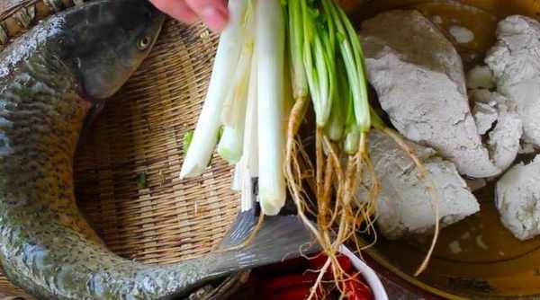 材料:草魚(或花鰱),豆花,泡椒,大蔥,芹菜,香菜,魚香