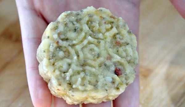 用手揪一塊放到手裡團一下,再用模具壓成一個好看的形狀,將花生小餅放入鍋中烙一下,鍋裡不用加油,直接幹烙就可以,烙上五分鐘左右,直到烙到兩面金黃微微變硬就可以瞭。