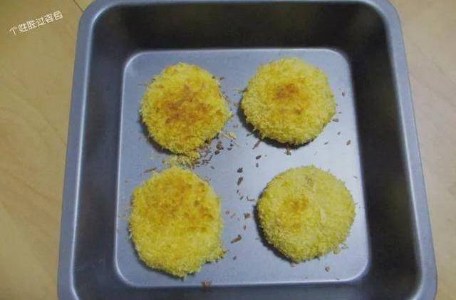 7、烤箱180度預熱後,將飯團擺入,烤8分鐘即可;沒有烤箱可以放入平底鍋中