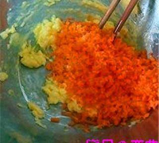 黃油50克、糖粉20克、低筋面粉75克、蛋白20克、胡蘿卜碎20克