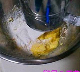 5、篩入低筋面粉,用刮刀拌成無幹粉狀;