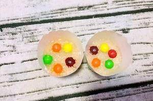 再盛一勺西米覆蓋在彩虹糖上。放冰箱冷凍25分鐘~
