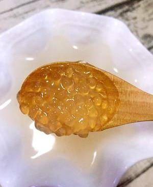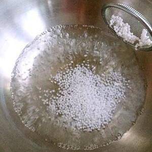 將西米倒入冷水中,換幾次水,把黏黏的漂浮物清洗幹凈,此時西米呈現是晶瑩剔透~