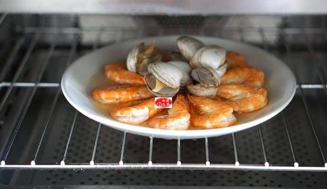 4、烤箱預熱好,放入蝦,純蒸功能100度10分鐘