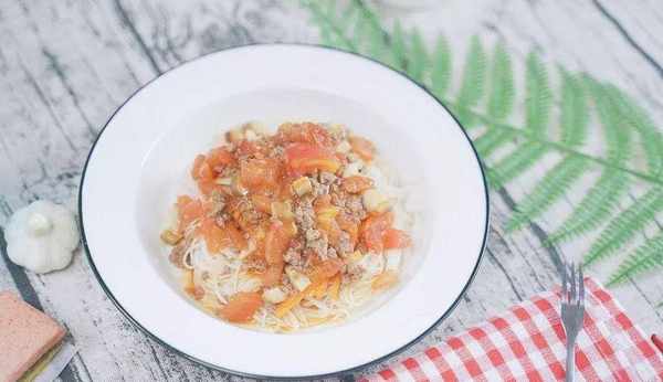 所以,我這次改良瞭這一道番茄牛肉雜醬面,比傳統雜醬面少瞭那些油咸的醬料,增加瞭蔬菜的比例,葷素搭配,營養更均衡更豐富瞭。