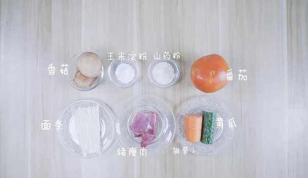 數量:牛肉或豬肉30g;面條30g:番茄150g;玉米淀粉+鐵棍山藥粉適量;黃瓜+胡蘿卜適量;芥花籽油適量