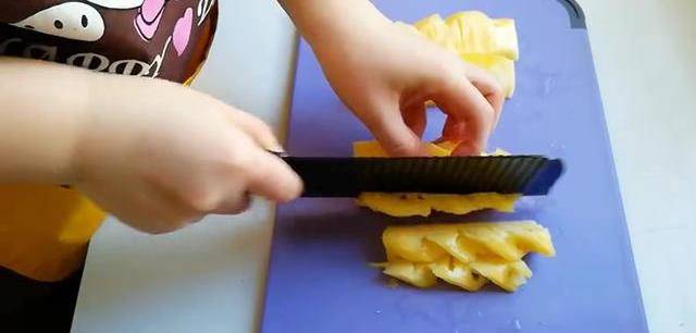 首先在200克面粉中放入兩顆的酵母,放一勺白糖促進發酵,先用溫水把酵母化開,面和好之後放置溫暖的地方發至兩倍大。菠蘿的心比較硬,口感不太好,所以用刀把它給去掉,切小丁放入浸泡好的糯米中。