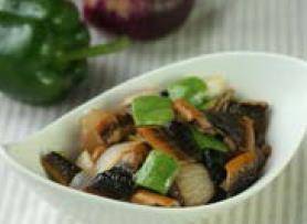 原料:鱔魚200克,洋蔥100克,圓椒55克,薑片、蒜末、蔥段各少許