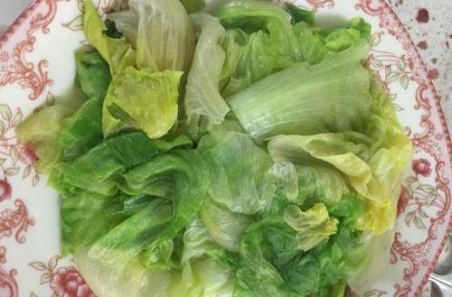 2、取來一口小鍋,在鍋中加入合適的清水後,再加入些許的鹽和花生油。將灶火調為大火,待到鍋中的水開始不斷翻滾後,把生菜全都進去。待到鍋中的水再次翻滾、生菜斷生後,將生菜撈出並放入盤中。