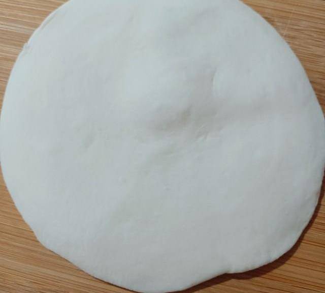 第10步、搟成四周薄中間厚的面胚。